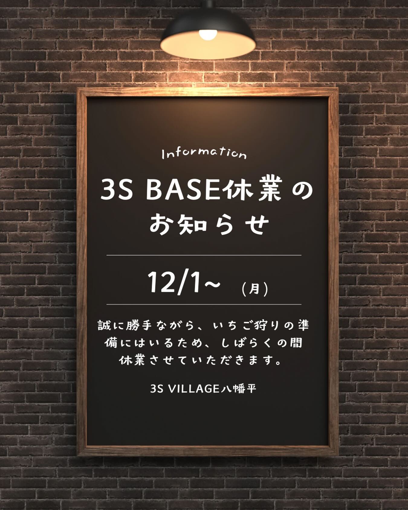 【3S BASE 休業のお知らせ】 3S BASEは12/1(月)より休業となります 突然のご報告になりますが、明日から3S BASE(カフェ・売店)については...